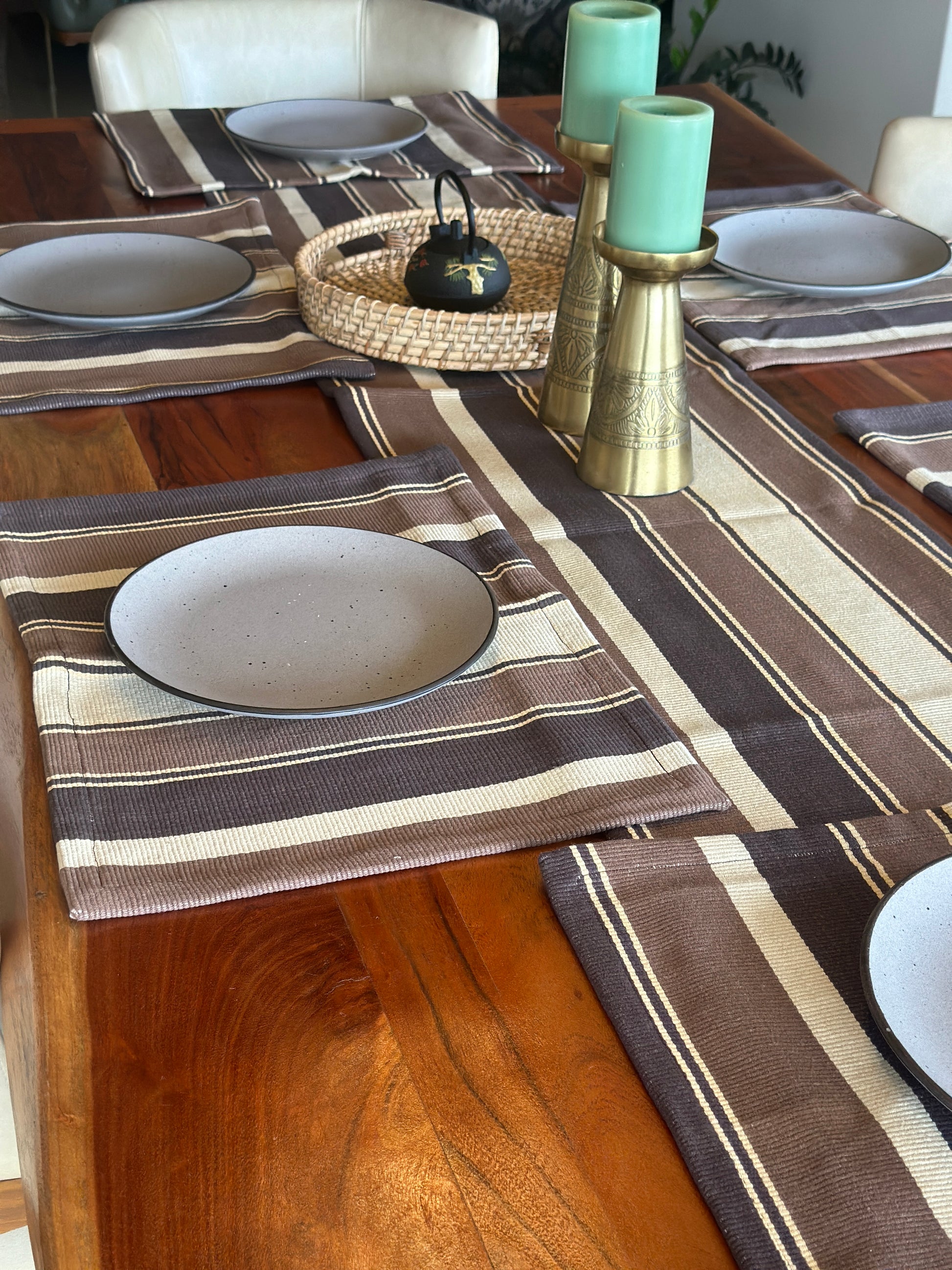 Brown Multi Striped Table Mats Set of 6