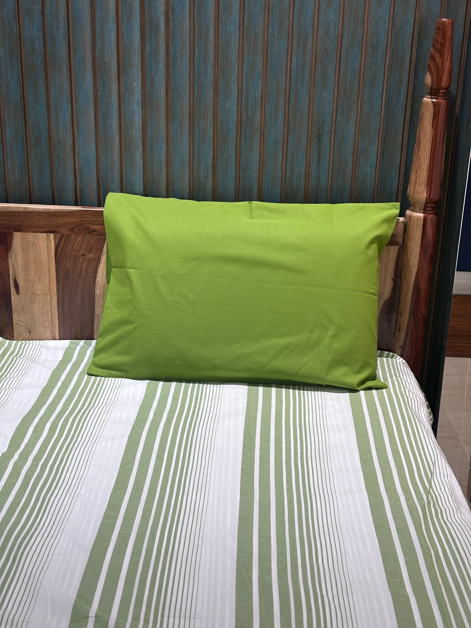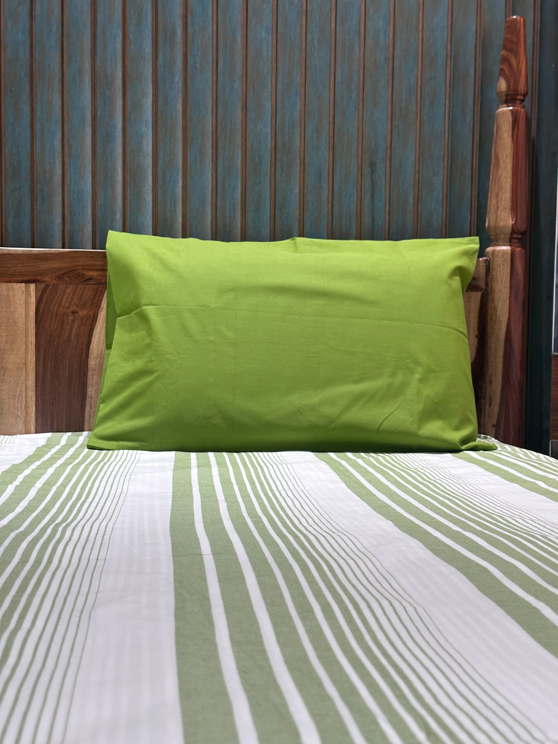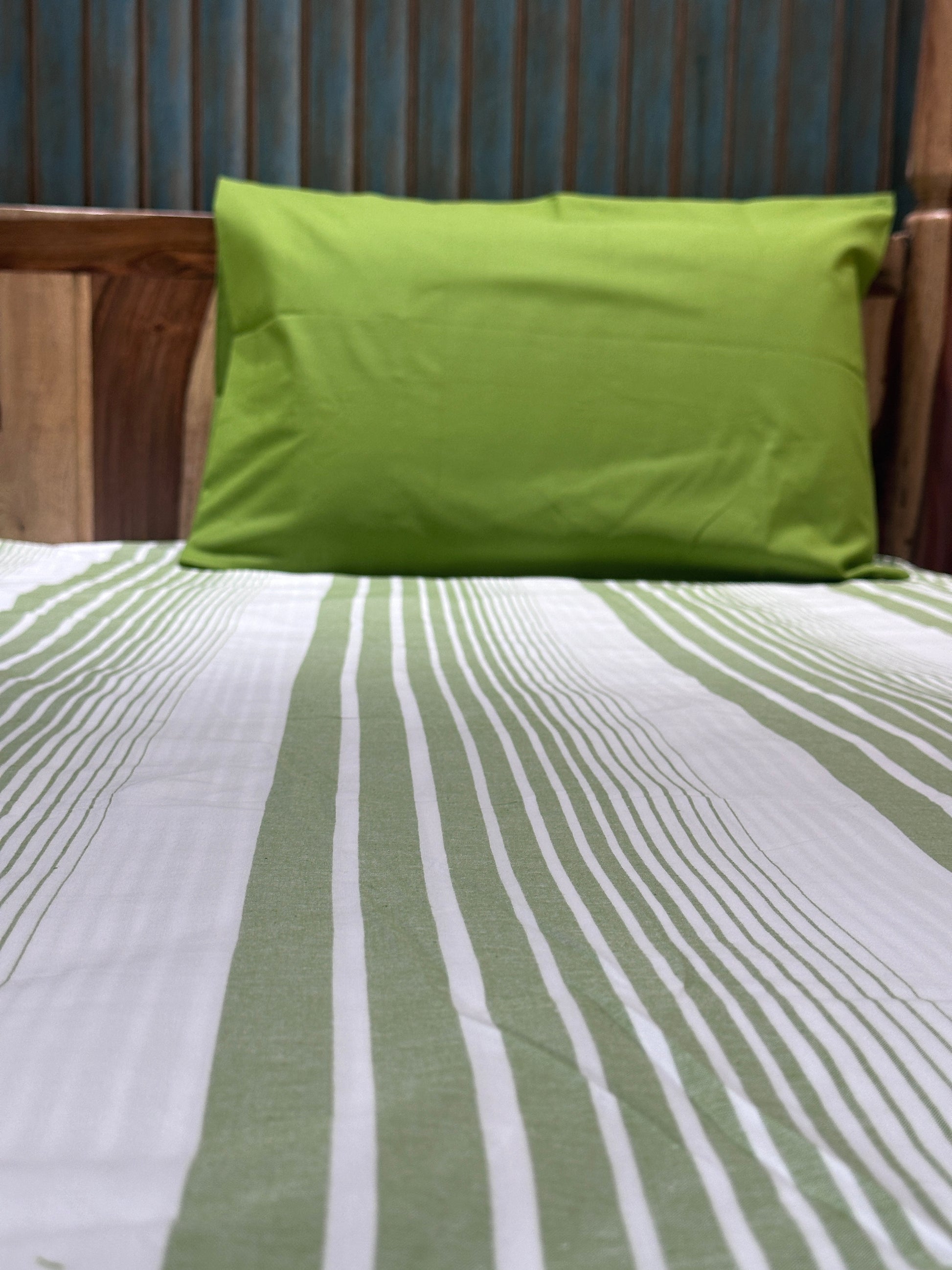 Green Stripe Bed Sheet with 2 Pillow Cover