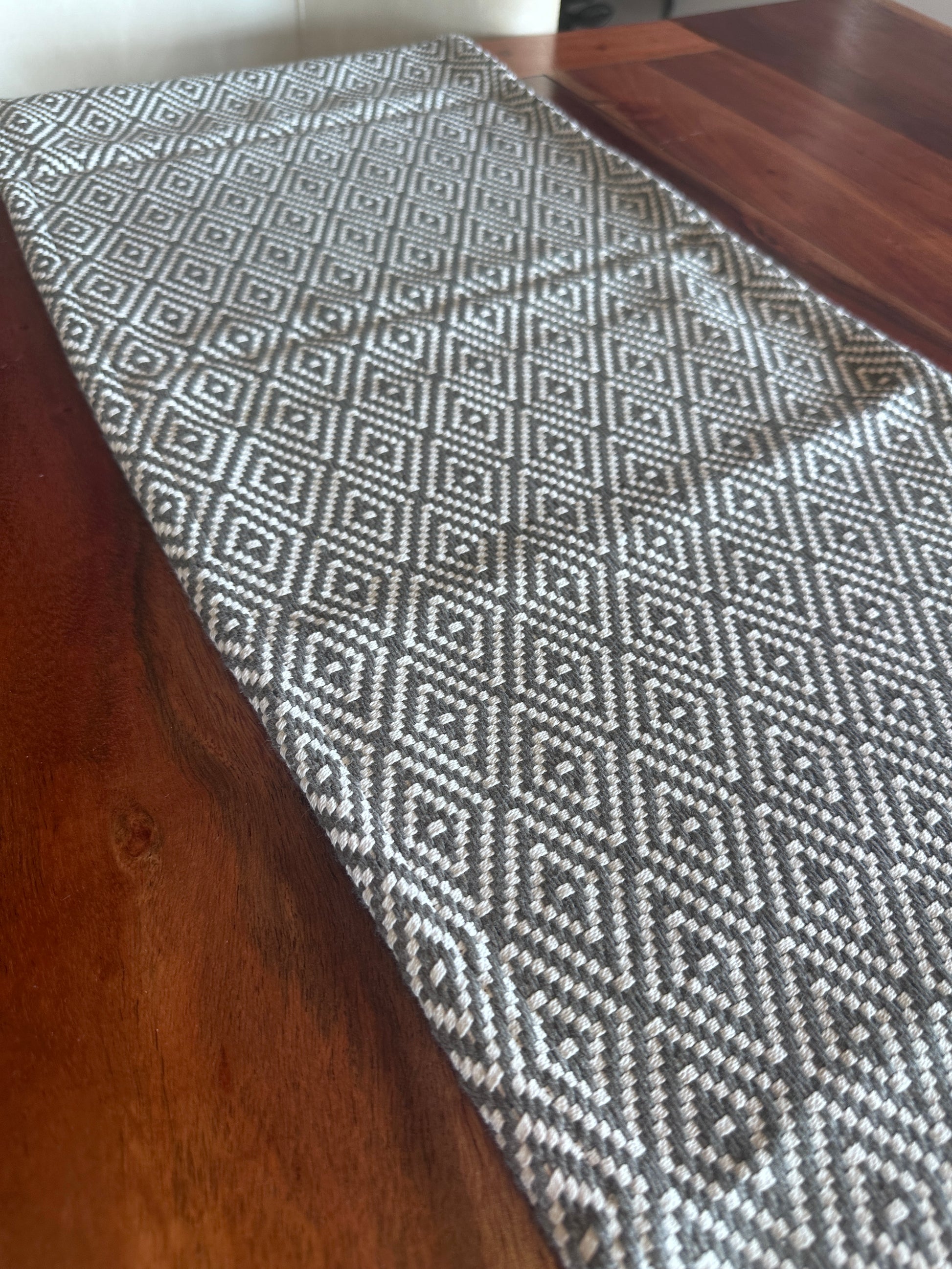 Grey and White Diamond Pattern Runner