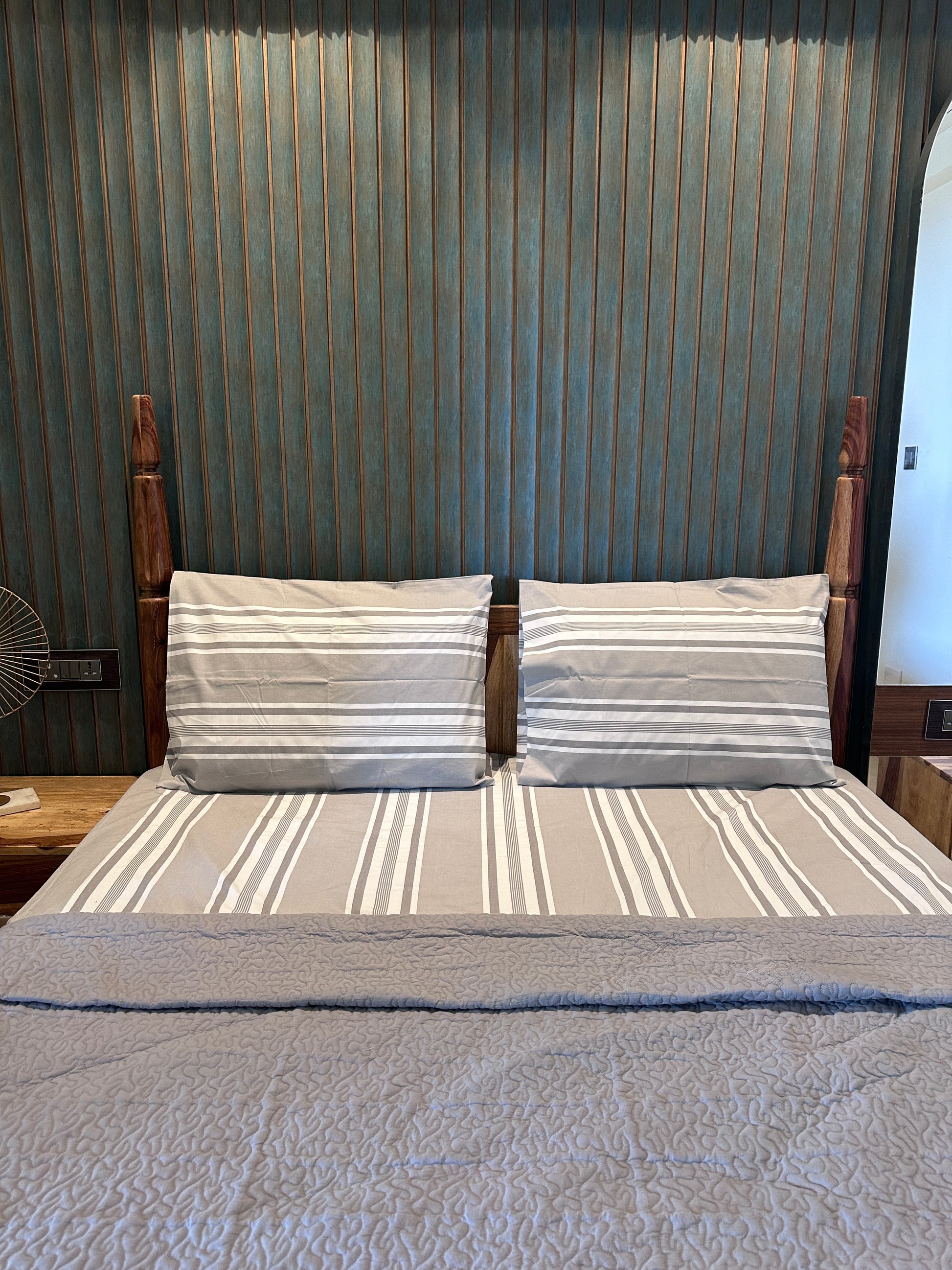 Grey Stripe Bed Sheet with 2 Pillow Cover