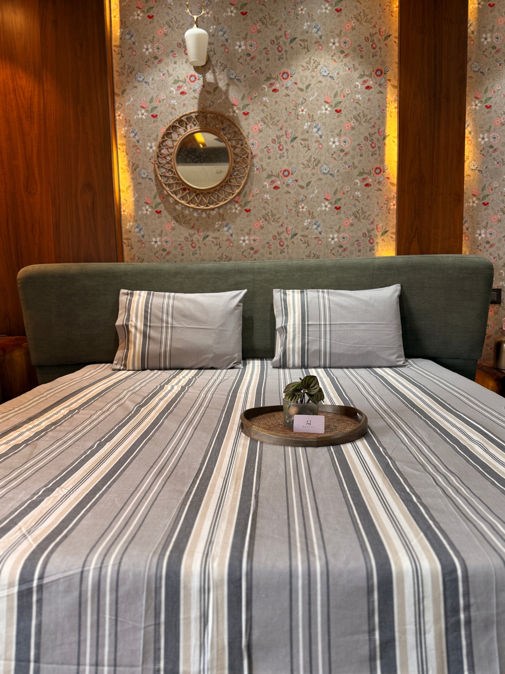 Grey Dobby Stripe Bed Sheet with 2 Pillow Cover